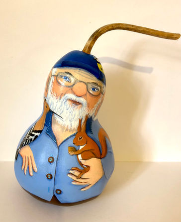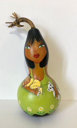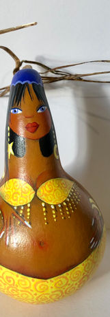 Ces plantes décoratives, autrefois utilisées comme gourdes et bouteilles, et que cultivait mon grand père, se récoltent à l'automne et, comme les calebasses, sèchent à l'air durant plusieurs mois avant de revivre à jamais sous le pinceau...